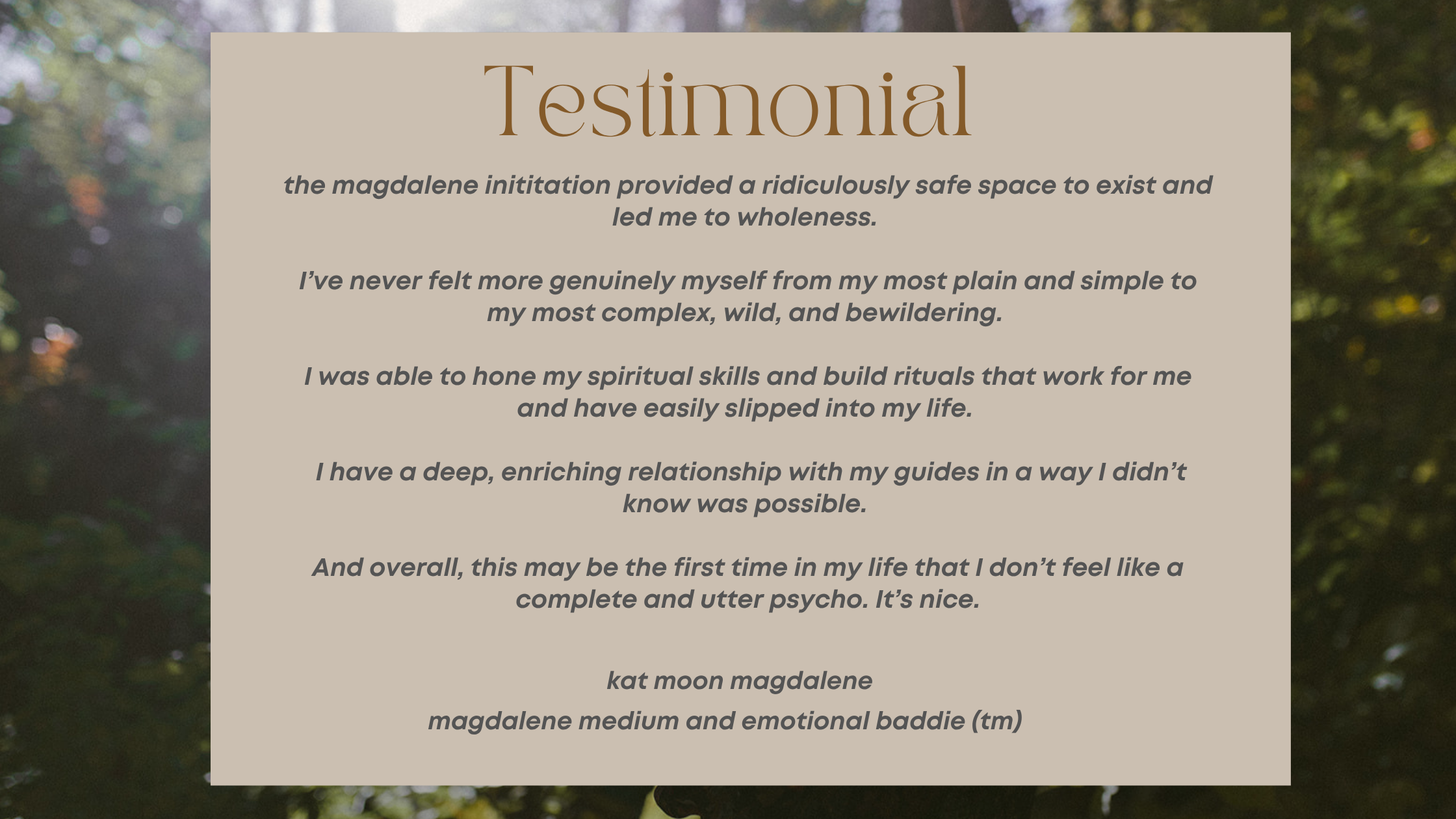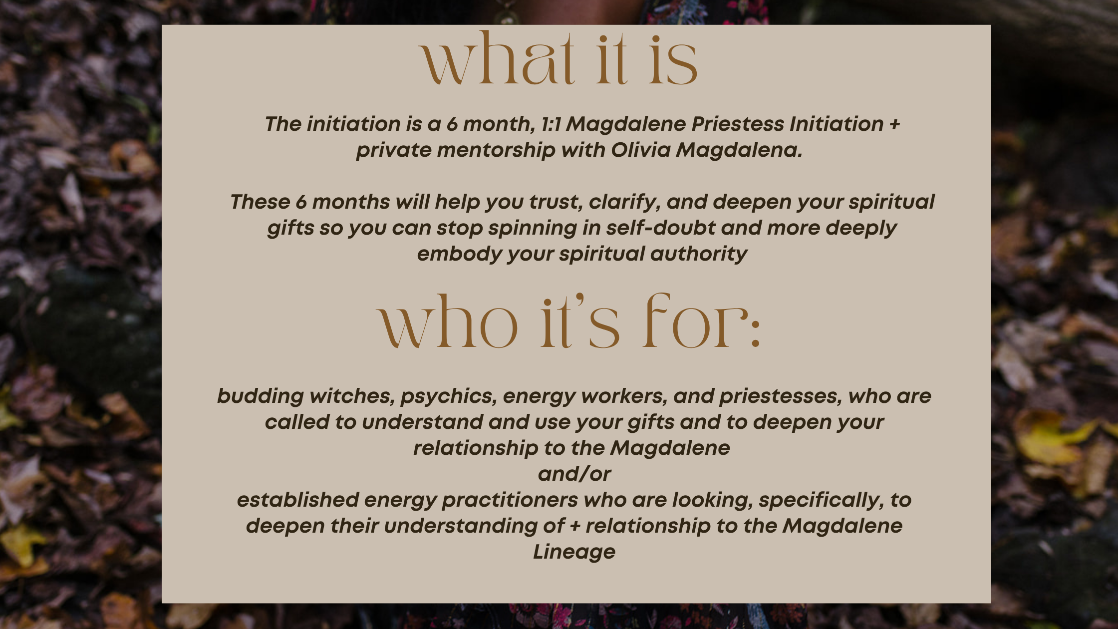 this is a 75 minute magdalene consult where we'll sit with any/everything coming up for you around the initiation, and life