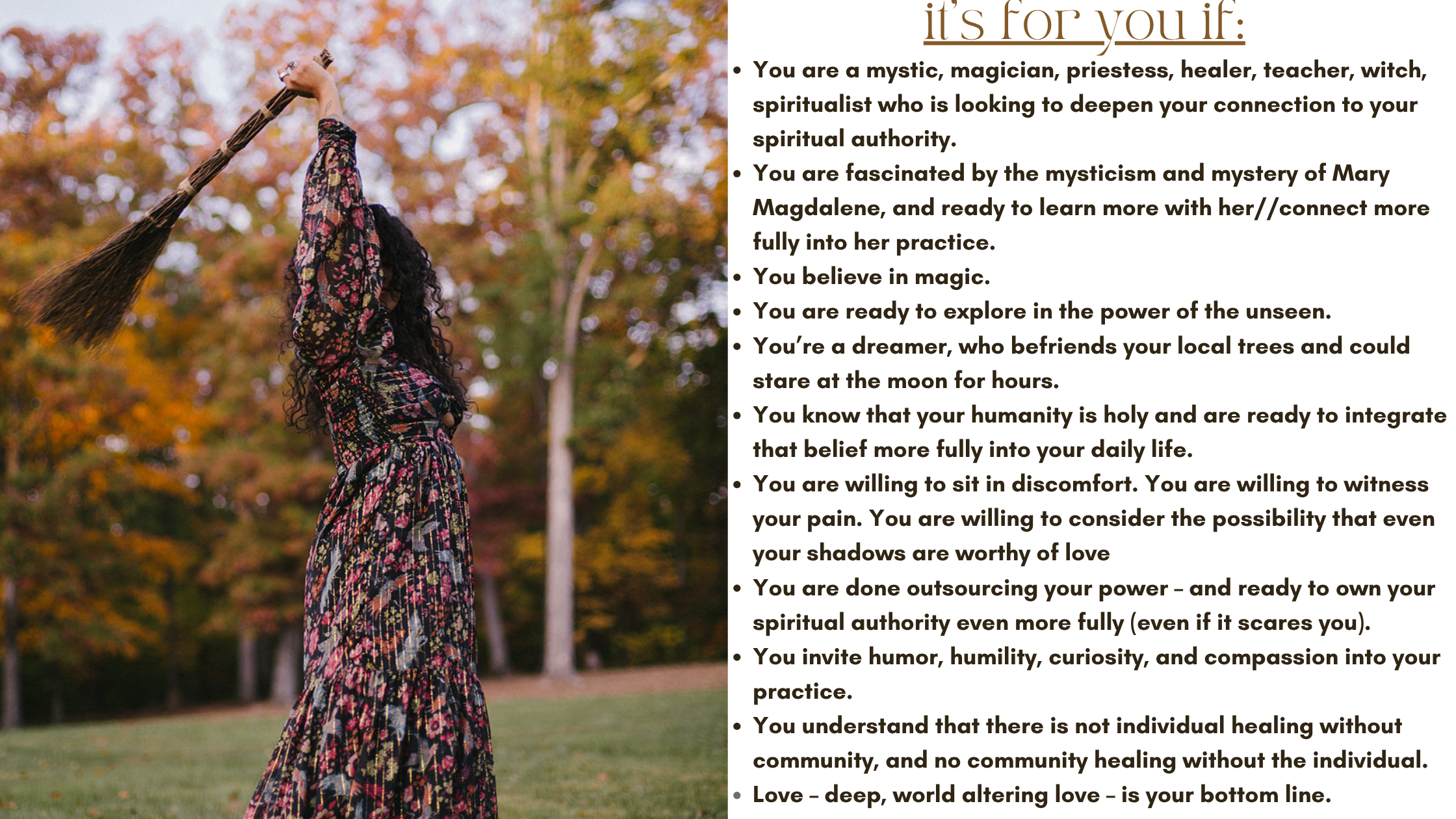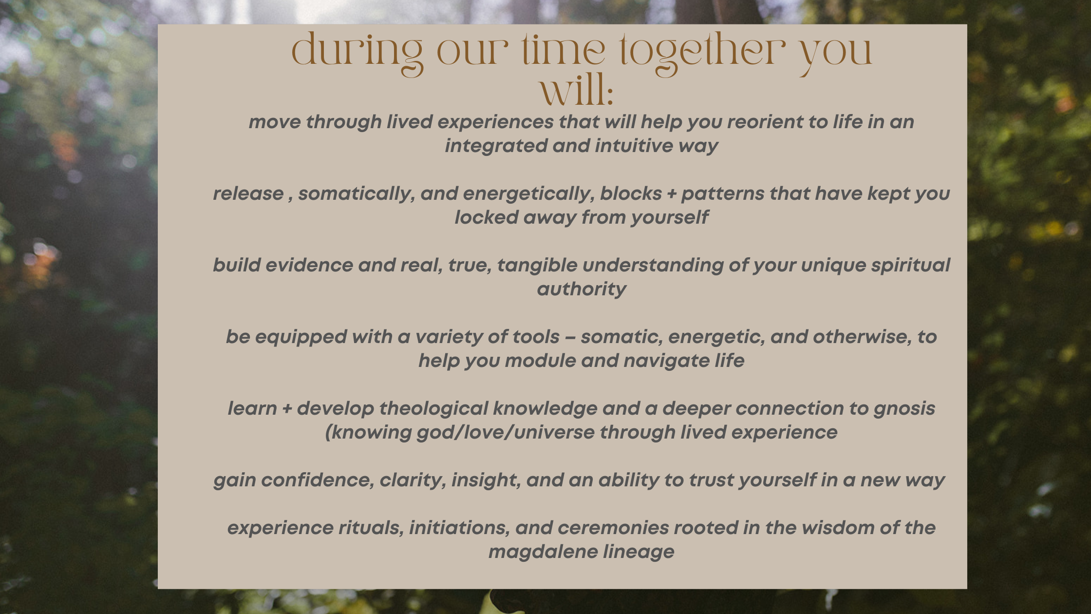 It’s a reclamation of your own voice, rhythm, and the sacred directive that won’t stop waking you up in the middle of the night.this call will be structured like a magdalene activation --